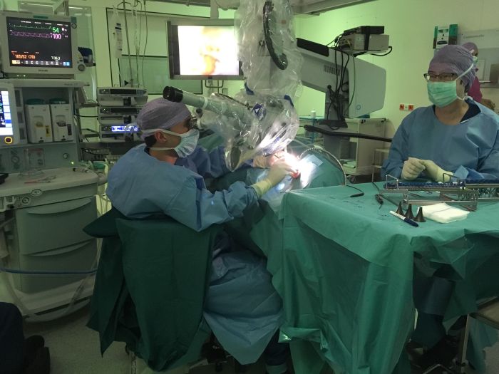 Klinika otorinolaryngologie a chirurgie hlavy a krku v Nijmegenu se specializuje na onkologii hlavy a krku, faciální chirurgii a poruchy sluchu, jejich genetické příčiny a léčbu. Představuje evropskou špičku v ušní chirurgii. Operační sály jsou vybavené nejmodernější mikroskopickou technikou. Zkušení chirurgové pod vedením doktora Henriho Marrese mě trpělivě provázeli celým spektrem sanačních a rekonstrukčních operací ucha, měla jsem možnost shlédnout například operace cholesteatomů, subtotální petrosektomie, implantace kochleárních implantátů a BAHA sluchadel.
